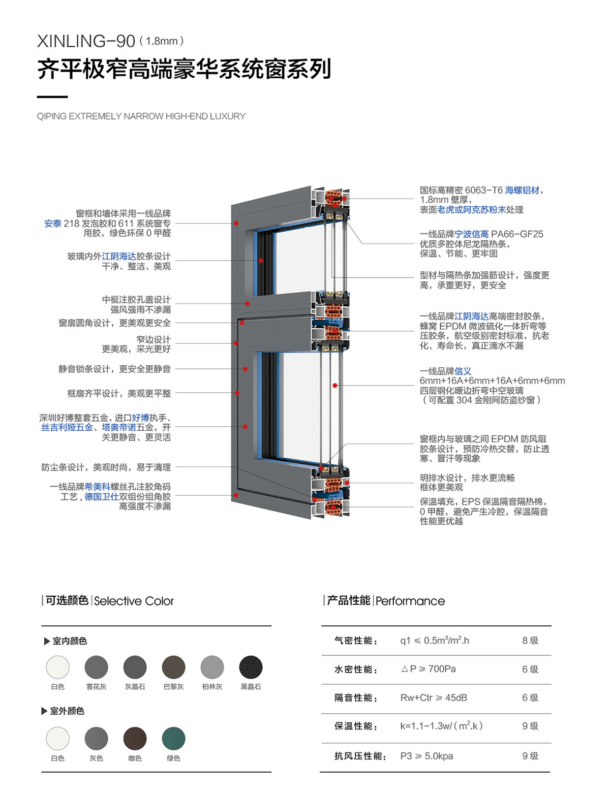 XINLING-90齊平極窄高端豪華系統窗系列(1.8mm)